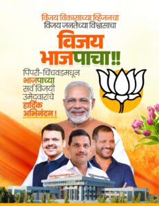 पिंपरी-चिंचवड महापालिका निवडणुकीत भारतीय जनता पक्षाने १२८ जागांपैकी ८५ जागांवर निर्विवाद बहुमत मिळवत दणदणीत विजय संपादन केला आहे. या विजयामुळे शहराच्या राजकीय इतिहासात भाजपने आपले वर्चस्व पुन्हा एकदा सिद्ध केले असून, पक्ष कार्यकर्ते व समर्थकांमध्ये आनंदाचे वातावरण पसरले आहे. या विजयाचा जल्लोष पिंपरीतील मोरवाडी येथील भाजप कार्यालयासमोर कार्यकर्त्यांनी साजरा केला. एकमेकांना पेढे भरवत या उत्साहात कार्यकर्ते सहभागी झाले.